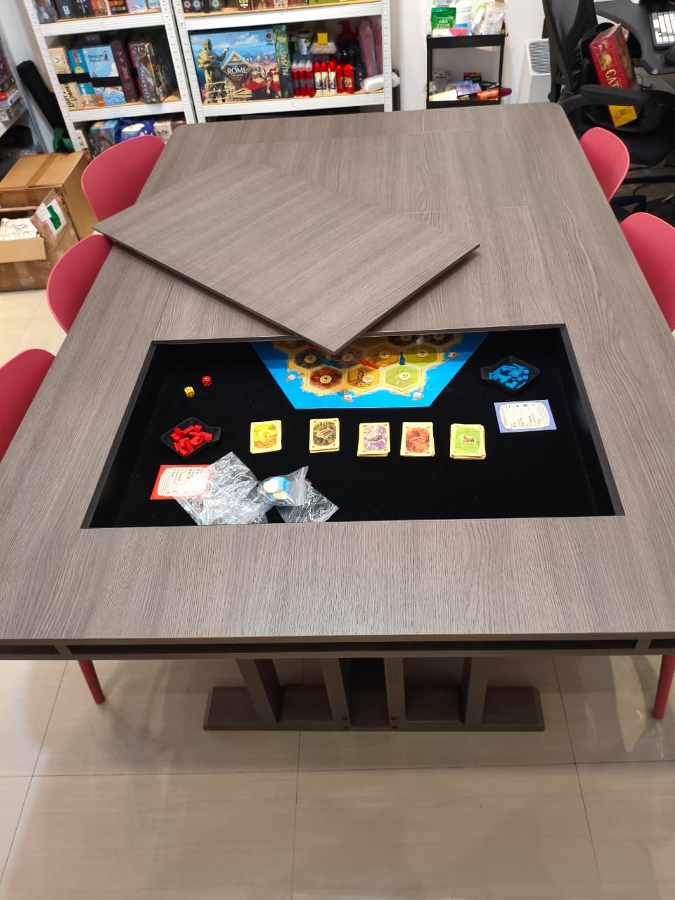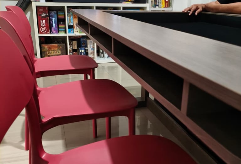 A comfortable & functional board game table.